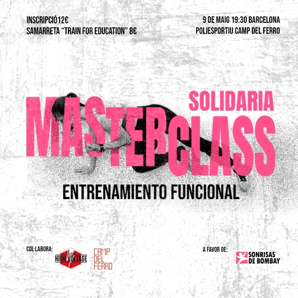 Te invitamos a la III edición de la Masterclass solidaria de entrenamiento funcional, una actividad pensada para todos los niveles, donde disfrutarás de una sesión dinámica y grupal con ejercicios de fuerza, resistencia y movilidad. Una forma perfecta de cuidarte mientras contribuyes a un proyecto solidario.