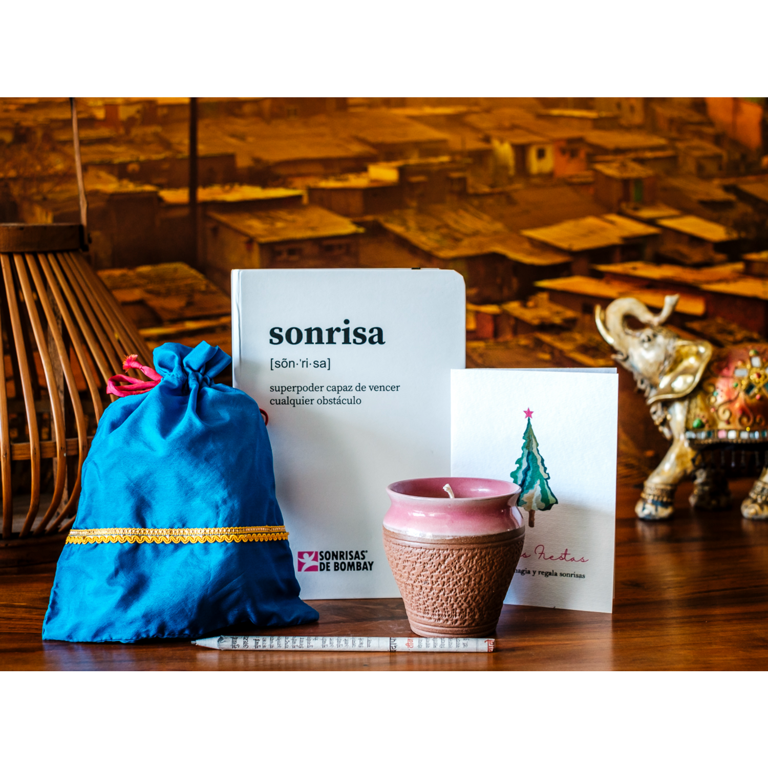 El cofre regalo solidario Sonrisas de la India, una invitación a conectar con la calma, la gratitud y la belleza de los pequeños gestos. Cada pieza que lo compone ha sido escogida con delicadeza y apoya nuestro Proyecto Udaan, dirigido a mujeres supervivientes de la trata, que gracias a este proyecto encuentran una oportunidad real de recuperación, seguridad y un nuevo futuro.