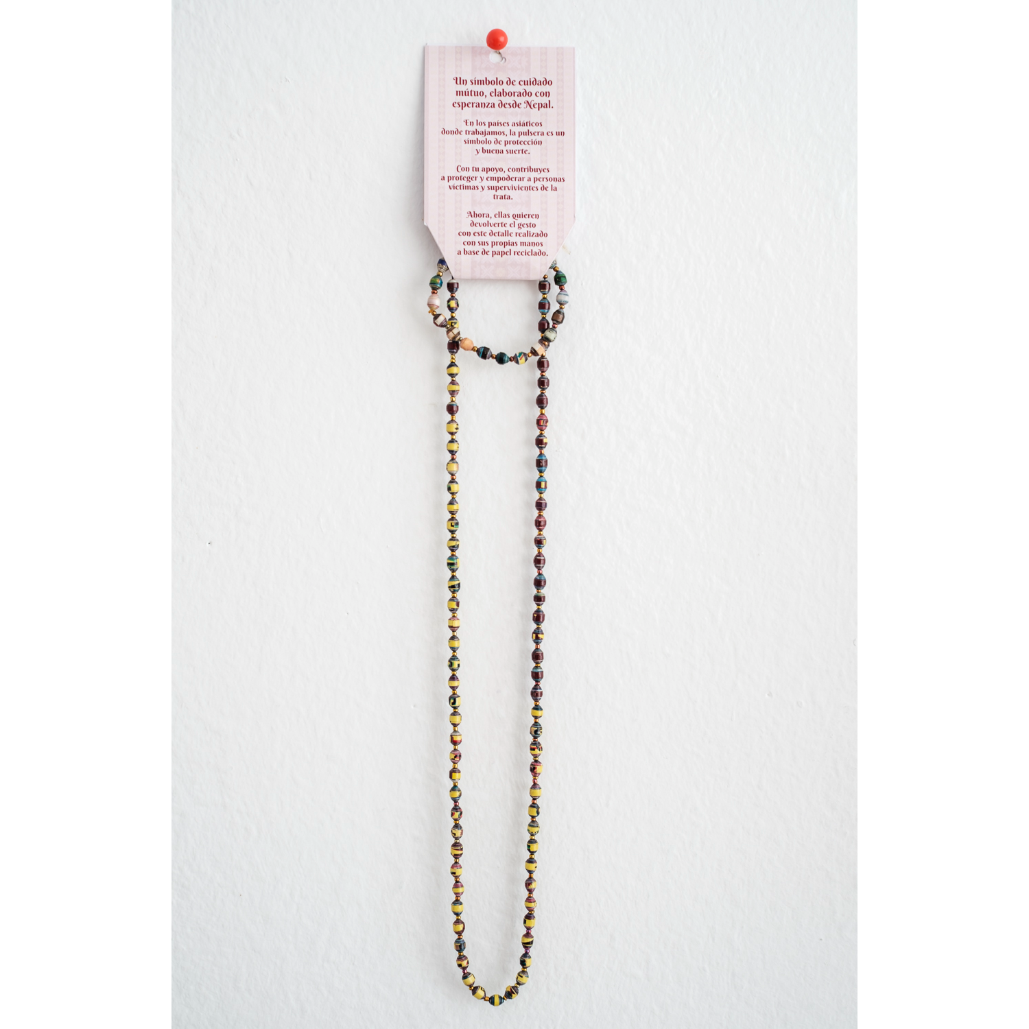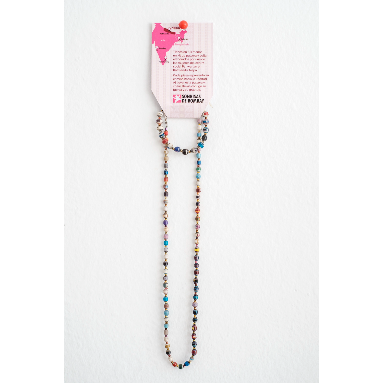 Te presentamos el kit collar y pulsera artesanal realizado en Nepal. Cada pieza es única y exclusiva y representa el camino de cada una de las mujeres que lo han elaborado hacia la libertad. Al llevar este collar y pulsera llevas contigo su fuerza y gratitud.